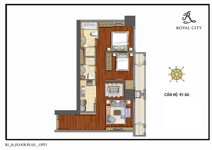 - Layout căn hộ: Lựa chọn phương án thiết kế OPTION 03 rất hợp lý nên không những 02 phòng ngủ + 01 phòng khách có ánh sáng tự nhiên mà cả phòng bếp, phòng ăn, 02phòng wc cũng rất sáng (có thể sử dụng ban ngày mà không cần bật đèn) – (xem file R1-2324- FLOOR PLAN.JPG gửi kèm)