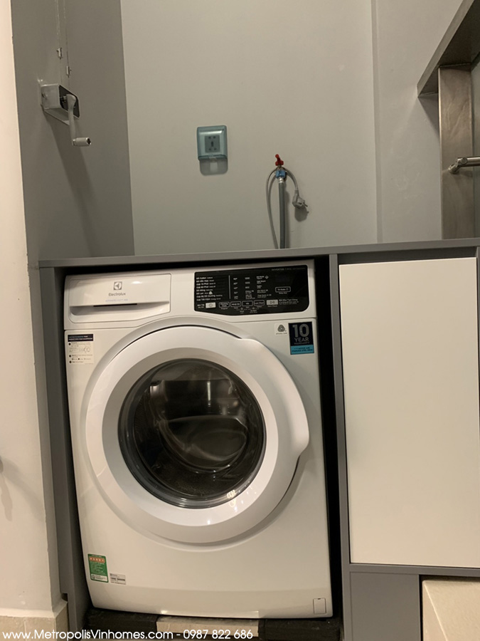 Máy giặt căn hộ 1 ngủ – Electrolux đặt tại ban công.