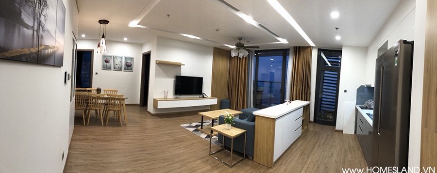 Góc view từ bếp vào phòng khách - căn hộ 3 ngủ 130m2 đủ đồ.